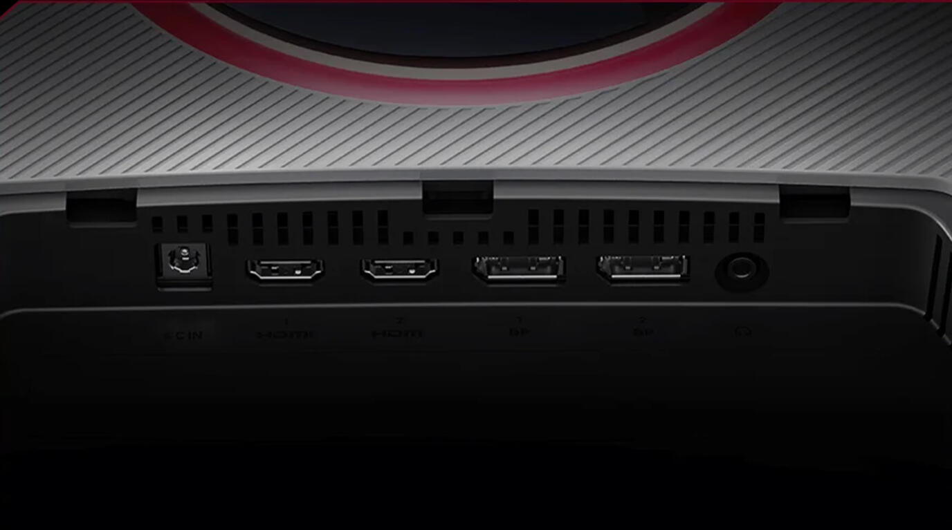 اتصالات شامل دو پورت HDMI 2.0، دو پورت DisplayPort 1.4، ورودی DC و جک صوتی است. مصرف برق ۶۵ وات اعلام شده است.