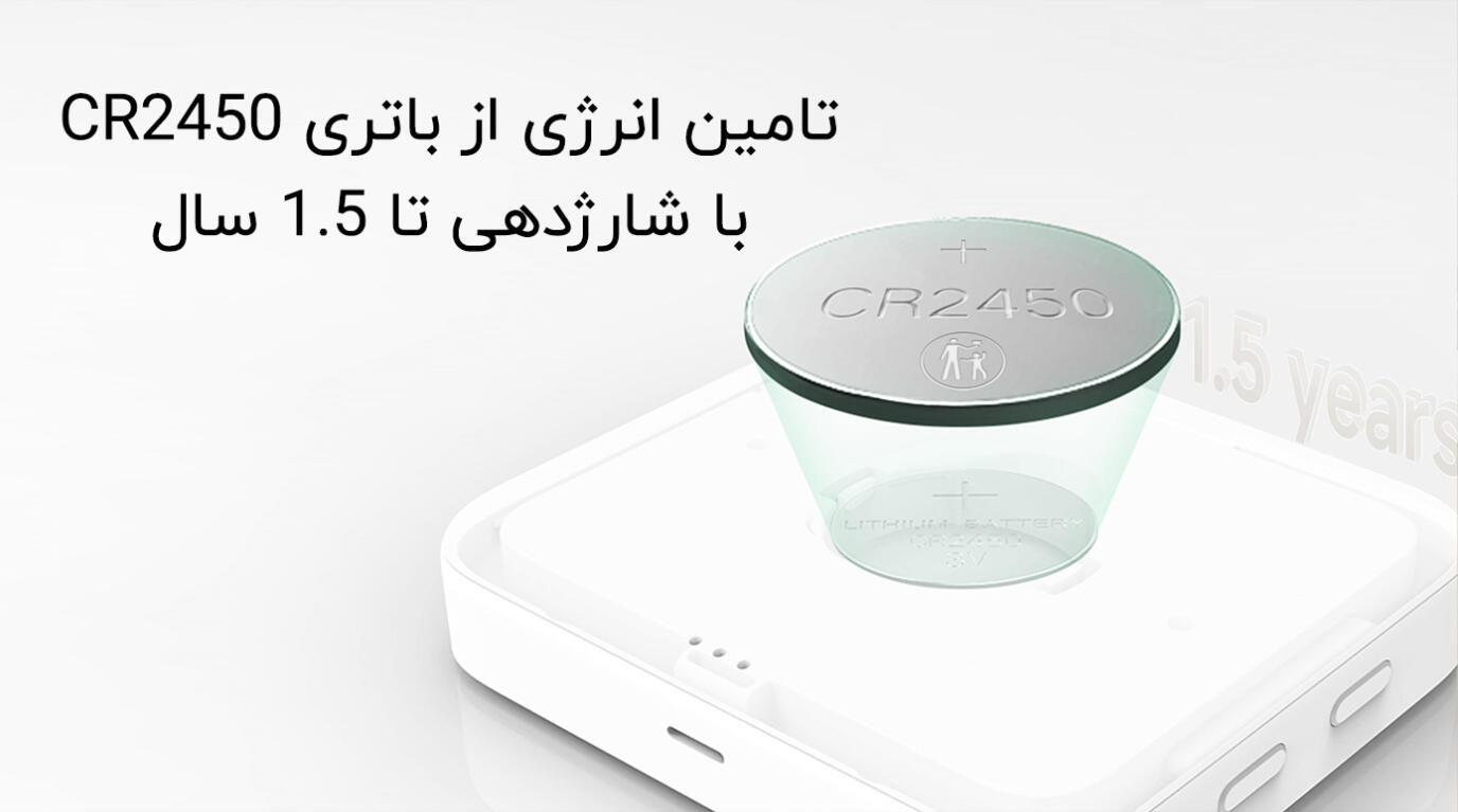 | منبع انرژی | باتری سکهای CR2450 با شارژدهی تا 1.5 سال |