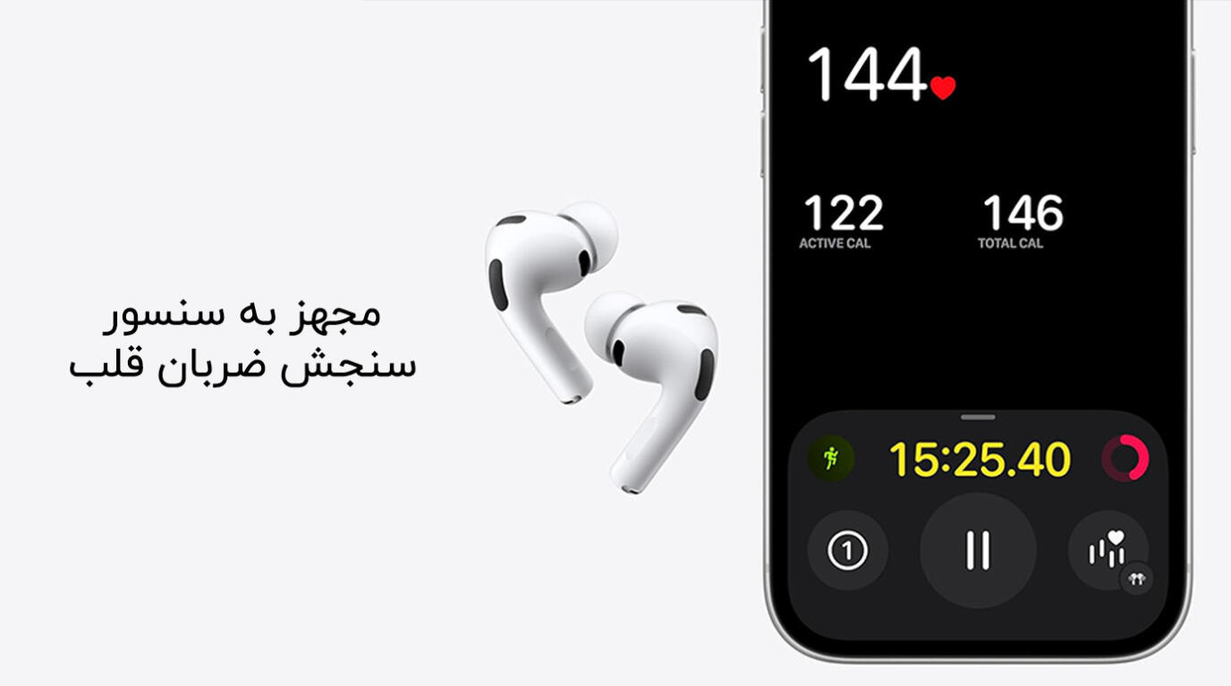 ایرپاد پرو نسل 3 اولین نسل از ایرپادهاست که به سنسور ضربان قلب مجهز شده است. این قابلیت امکان اندازه گیری ضربان و کالریسوزی را هنگام ورزش فراهم میکند. همچنین با استاندارد مقاومت IP57، این محصول در برابر عرق، آب و گرد و غبار مقاوم است و گزینهای ایدهآل برای تمرینات ورزشی محسوب میشود.