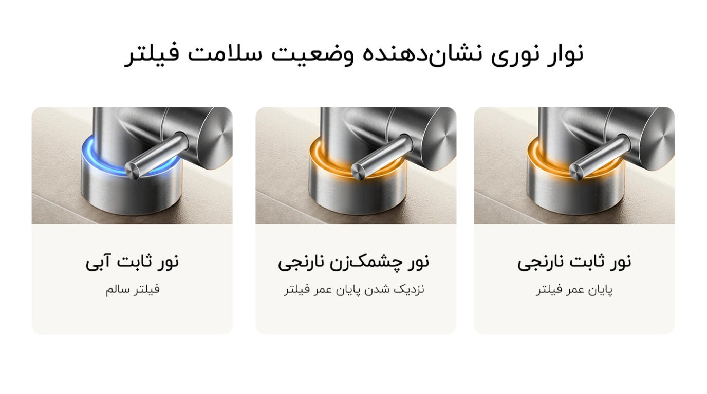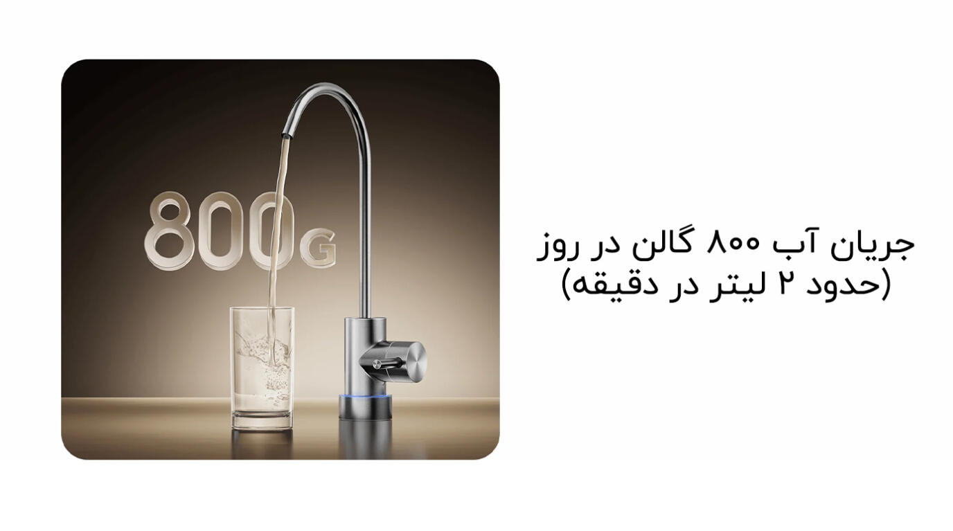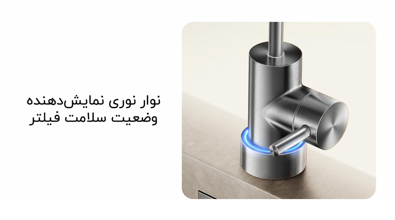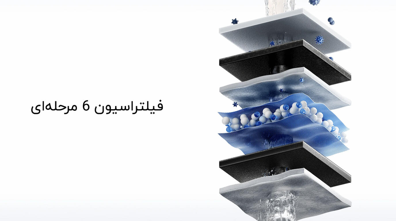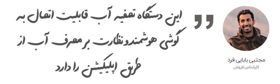 | سایر ویژگیها | فیلتراسیون شش مرحلهای، امکان فیلتر 2 لیتر آب در دقیقه، نوار LED نمایش دهنده وضعیت سلامت فیلتر، امکان اتصال به گوشی اندروید و iOS، نظارت بر کیفیت آب و وضعیت سلامت فیتلر از طریق اپلیکیشن |