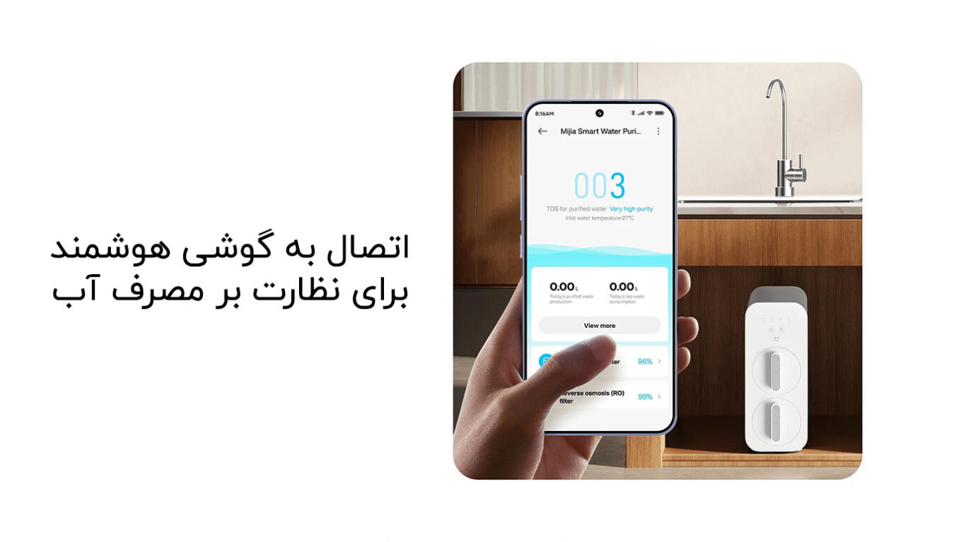 با اتصال Wi-Fi، دستگاه تصفیه آب شیائومی مدل Mijia Smart Water Purifier N800G به اپلیکیشن Xiaomi Home متصل میشود و امکاناتی مانند: