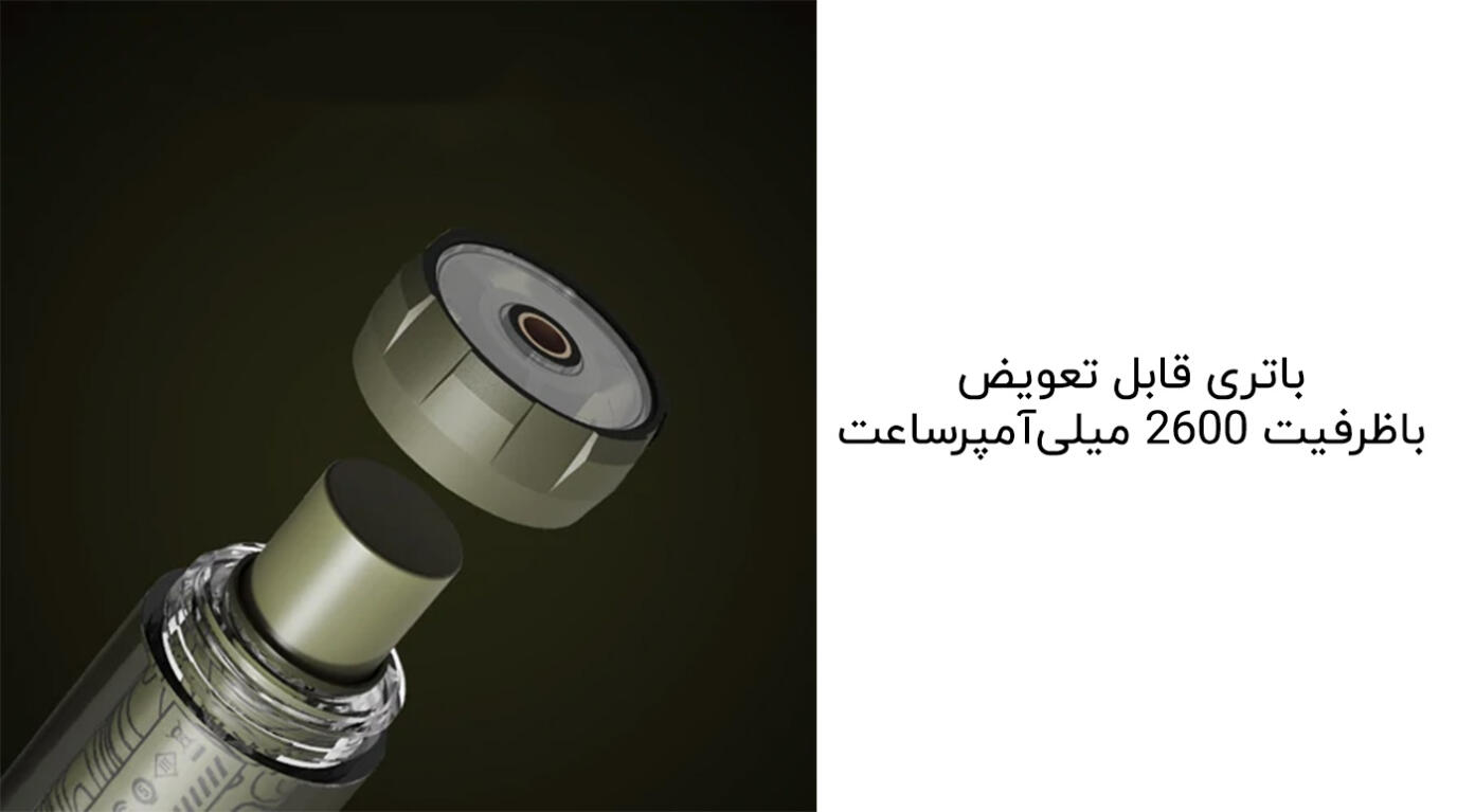 | ظرفیت باتری | 2600 میلی آمپر ساعت از نوع 18650 (قابل تعویض) |