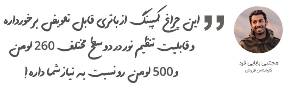 ترکیب روشنایی بالا، شارژدهی مناسب و قابلیت حمل آسان، این چراغ را به یک ابزار چندکاره تبدیل کرده است که در هر موقعیتی میتوان روی آن حساب کرد.
