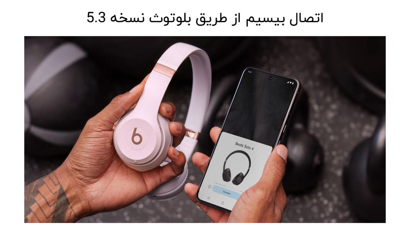 - بلوتوث 5.3: Beats Solo 4 از بلوتوث نسخه 5.3 پشتیبانی میکند که اتصال پایدار و با کیفیت بالا را بین هدفون و دستگاههای مختلف فراهم میکند. این نسخه از بلوتوث به بهبود برد اتصال و کاهش تأخیر در انتقال صدا کمک میکند، که برای تجربههای گوش دادن به موسیقی و تماشای ویدیو بسیار مفید است