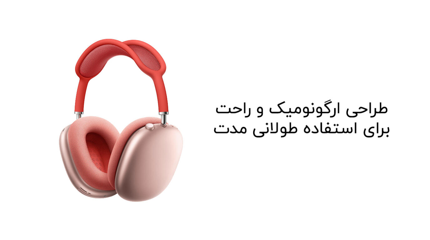 استفاده از بالشتکهای ویژه در هدست بیسیم اپل مدل AirPods Max باعث شده تا محیطی کاملاً آکوستیک در اطراف گوش ایجاد کند. این بالشتکها به شکلی خاص و با موادی ویژه ساختهشدهاند تا با تمامی حالات گوش افراد مختلف سازگار باشد. استفاده از یکلایه بافتنی در روکش بالایی این بالشتکها، امکان انتقال هوا را برای مقابله با ایجاد حس ناخوشایند در استفاده های طولانی مدت فراهم کرده است و در این حال به کاربران ایرپاد مکس شانس چرخاندن و قرار گرفتن گوشیها در شیوههای مختلف را فراهم کرده است. این موضوع در کنار استفاده از روکش دارای فولاد ضدزنگ و بازوهای تلسکوپی باعث شده تا ایرپاد مکس بتواند پاسخگوی استفاده همیشگی افرادی باشد که نیاز زیادی به استفاده روزمره از هدفون دارند.
