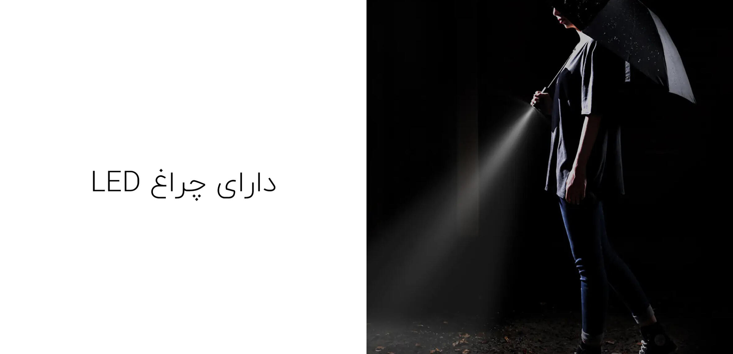 مهمترین تمایز چتر 90 GOFUN، چراغ LED تعبیهشده در دسته آن است؛ نوری هدفمند و متمرکز که مسیر حرکت را در شب، هوای مهآلود یا بارندگی شدید روشن میکند. این نور نهتنها به کاربر کمک میکند موانع مسیر را بهتر ببیند، بلکه باعث میشود رانندگان و عابران دیگر نیز حضور شما را سریعتر تشخیص دهند. برخلاف چراغقوههای جداگانه که نیاز به حمل و مدیریت دارند، این سیستم روشنایی دقیقاً در جایی قرار گرفته که بیشترین کاربرد را دارد: در امتداد دید طبیعی کاربر هنگام راه رفتن.
