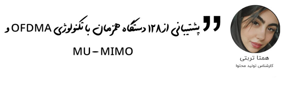 این مودم میتواند تا 128 دستگاه را همزمان مدیریت کند، با بهرهگیری از MU-MIMO و OFDMA.
