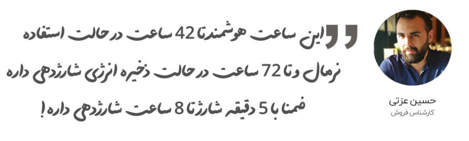 | مشخصات باتری | تا 42 ساعت شارژدهی در حالت استفاده عادی و تا 72 ساعت در حالت ذخیره انرژی | شارژ فوق سریع؛ 5 دقیقه شارژ برای 8 ساعت شارژدهی و 15 دقیقه شارژ برای 12 ساعت شارژدهی |