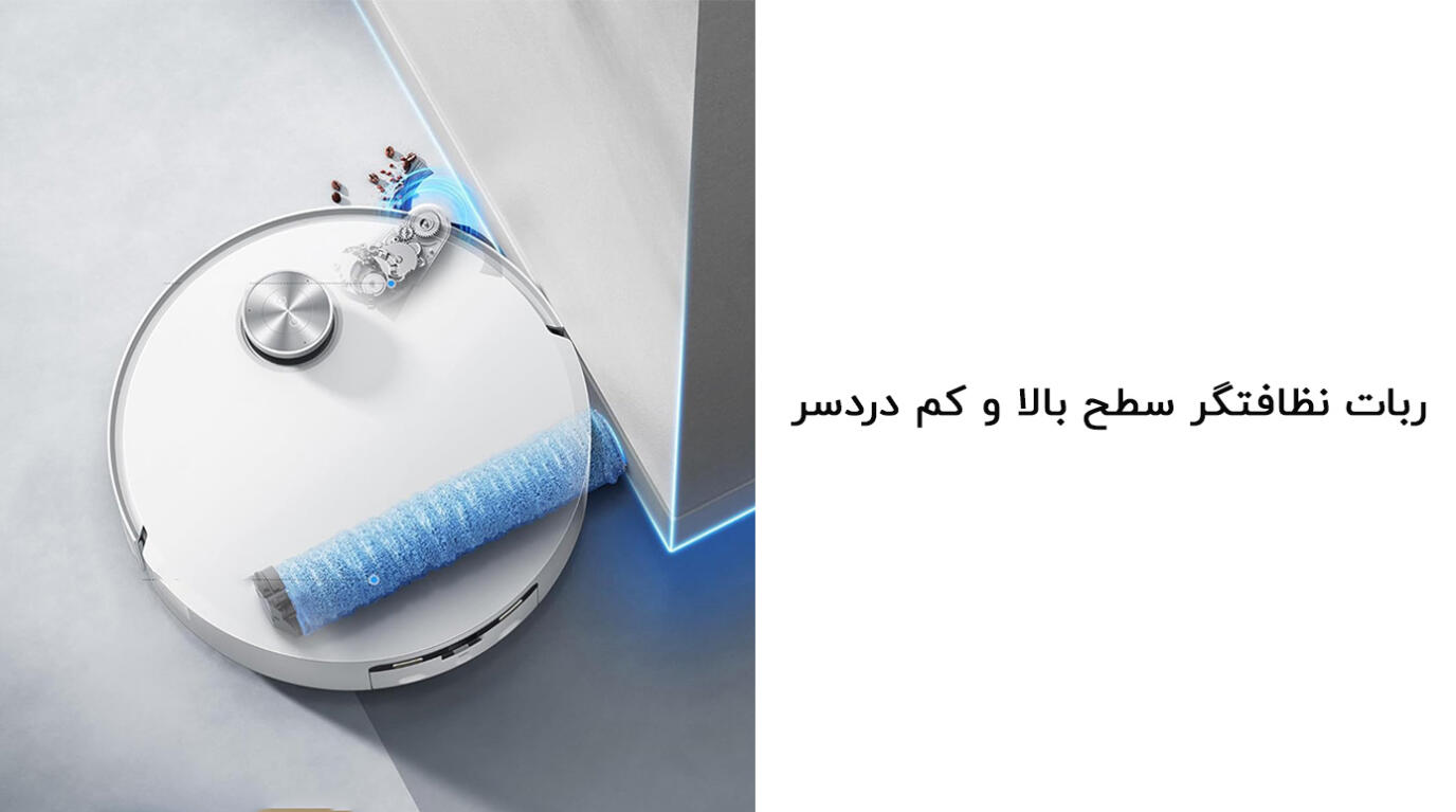 رول mop این دستگاه به طور مداوم با آب تازه تمیز میشود، تیغهای برای جدا کردن آلودگیها دارد و فشار mop را میتوان از طریق اپ تنظیم کرد. این باعث میشود که بهجای پخش آلودگی در هنگام شستوشو، سطح همیشه با mop پاک و свеx برخورد شود.در ایستگاه پایه، رول mop با آب داغ (تا ۱۰۰ درجه سلسیوس) شسته و با هوای گرم خشک میشود، بنابراین نگهداری آن به صورت قابلتوجهی خودکار و بهداشتی است.