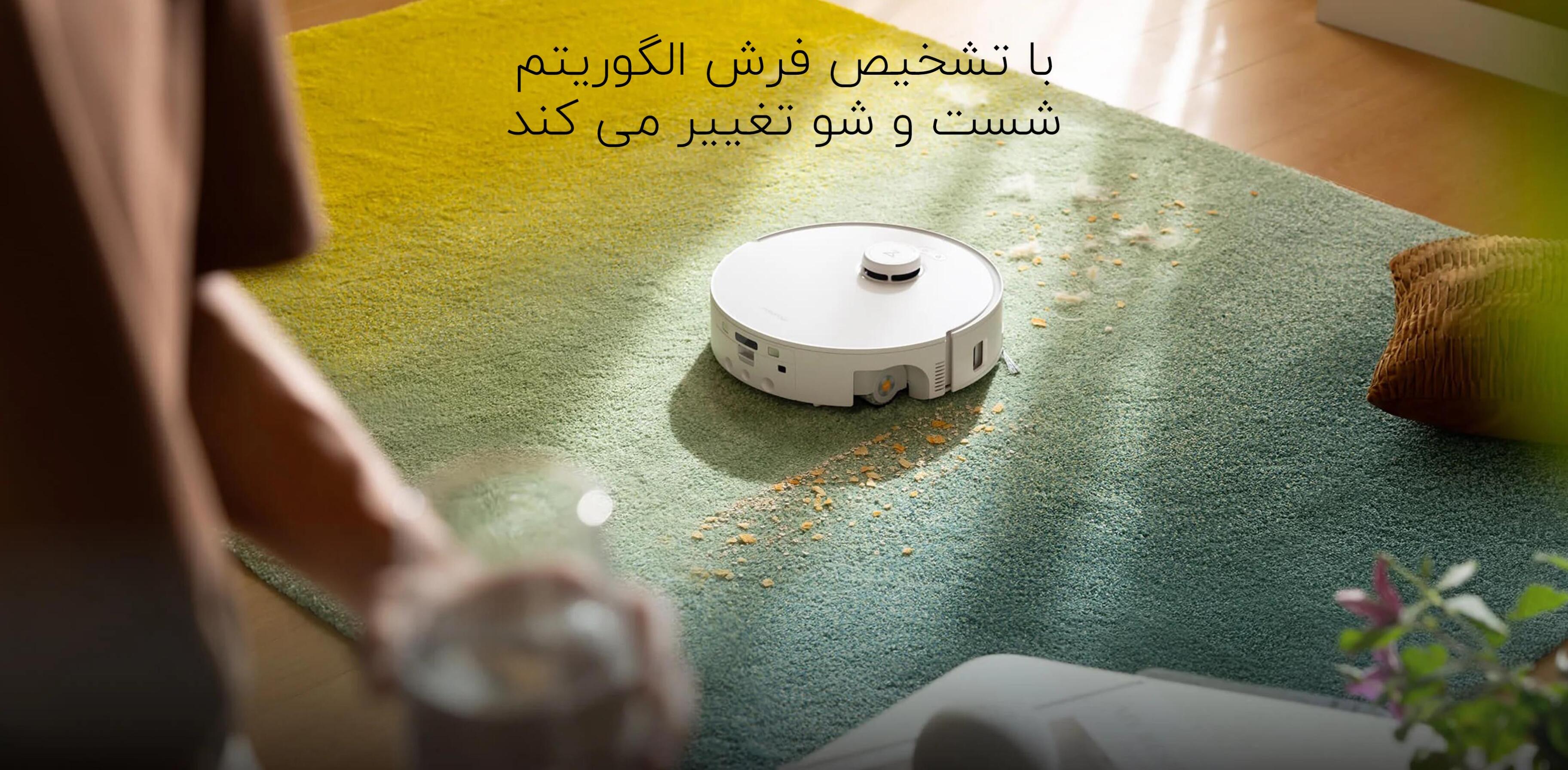 سیستم محافظت از فرش در Roborock Qrevo Curv 2 Flow بهطور هوشمند تشخیص میدهد که ربات وارد محدوده فرش شده و بلافاصله الگوریتم شستوشو را تغییر میدهد تا هیچ رطوبتی وارد تار و پود فرش نشود. این عملکرد دقیق باعث میشود فرآیند تیکشی فقط روی کف سخت انجام شود و فرشها کاملاً خشک و ایمن باقی بمانند. سنسورها و الگوریتمهای پیشرفته ربات، یک استراتژی هوشمند برای فرش ایجاد میکنند که بسته به نوع بافت، میزان مکش و نحوه حرکت را بهطور خودکار تنظیم میکند. روی فرش مکش تقویت میشود و تیکشی کاملاً غیرفعال میگردد تا نتیجهای حرفهای و بدون رطوبت ارائه شود. این مدیریت هوشمند باعث میشود فرشها همیشه تمیز، بدون لک و بدون آسیب باشند و ربات بهترین تصمیم ممکن را در هر لحظه بگیرد.