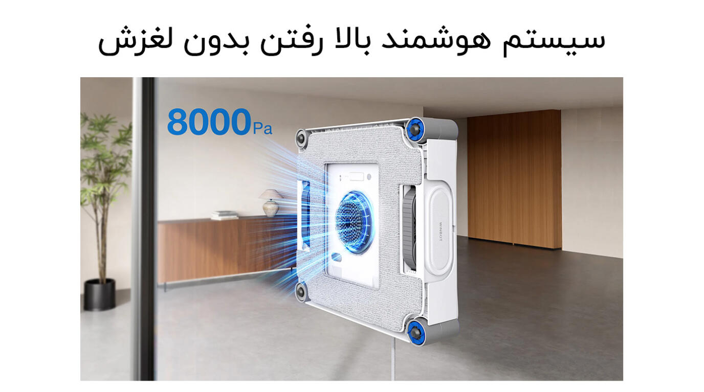 | قدرت مکش | 8000 پاسکال برای چسبیدن ربات به شیشه |