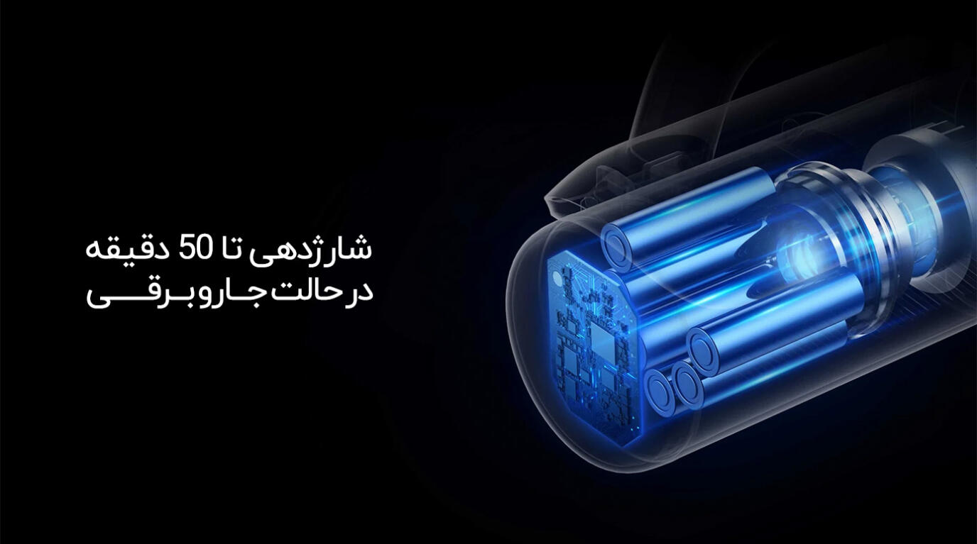 | میزان شارژدهی باتری | تا 50 دقیقه در حالت جاروبرقی و تا 30 دقیقه در حالت طی کشی |