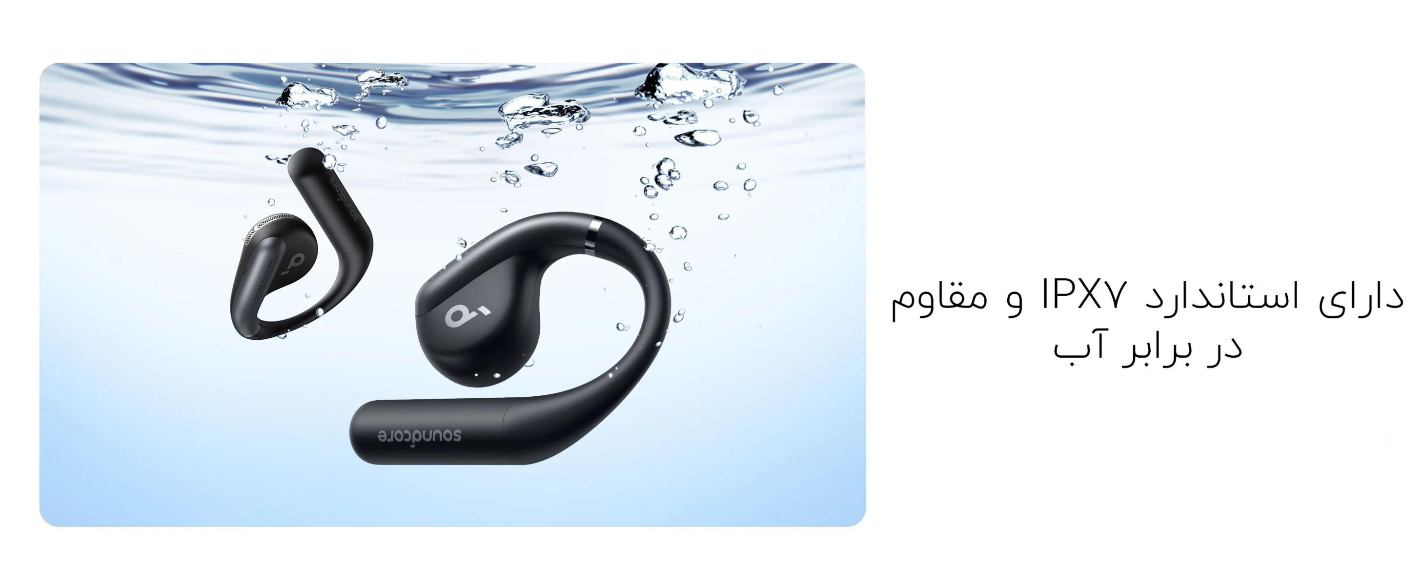مجهز به فناوری BASS UP | دارای فناوری SWEAT GUARD جهت محافظت بیشتر در مقابل رطوبت | مقاومت بالا در برابر آب و عرق (IPX7) | مدت زمان پخش 11 ساعت به همراه کیس 42 ساعت | دارای 4 میکروفن مجهز به الگوریتم هوش مصنوعی برای تماس های شفاف | درایورهای قدرتمند 14 میلی متری | طراحی Open-Ear بدون قرار گرفتن داخل کانال گوش | سازگاری کامل با اپلیکیشن Soundcore