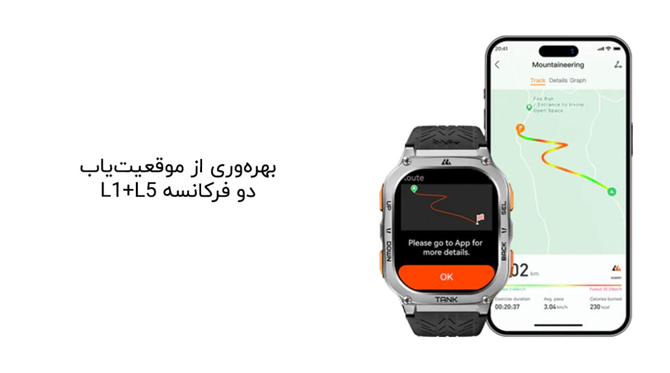 ساعت هوشمند کاسپت مدل Tank M3 Ultra اولترا برای ماجراجویی هیجانانگیز در کنار شما است. این ساعت هوشمند با بهرهگیری از سیستم موقعیتیابی دو بانده و پشتیبانی از 6 ماهواره، دقت مسیریابی بینظیری را در اختیار شما قرار میدهد. چه کوهنورد باشید، چه دوچرخهسوار یا کاوشگر، این ساعت هوشمند همواره راهنمای مطمئنی برای شما خواهد بود. قطبنما، ارتفاعسنج و فشارسنج داخلی نیز به شما کمک میکنند تا جهت حرکت، ارتفاع و شرایط آب و هوایی را به دقت زیر نظر داشته باشید.