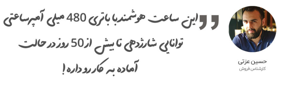 | مشخصات باتری | تا 15 روز شارژدهی در حالت عادی، تا 8 روز با استفاده سنگین، تا 5 روز با صفحه نمایش همیشه روشن و تا 35 ساعت با استفاده از GPS |