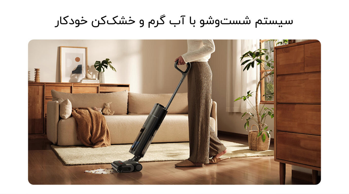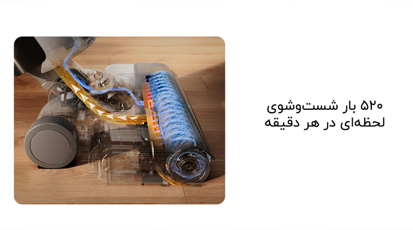 یکی از قابلیتهای شاخص این مدل، شستوشوی خودکار با آب داغ است. پس از پایان کار، رول برس با آب گرم تمیز میشود و سپس دستگاه با خشککن هوای گرم مداوم، رطوبت باقیمانده را از بین میبرد. این فرایند مانع رشد باکتری و بوی نامطبوع میشود و عمر برس را افزایش میدهد.
