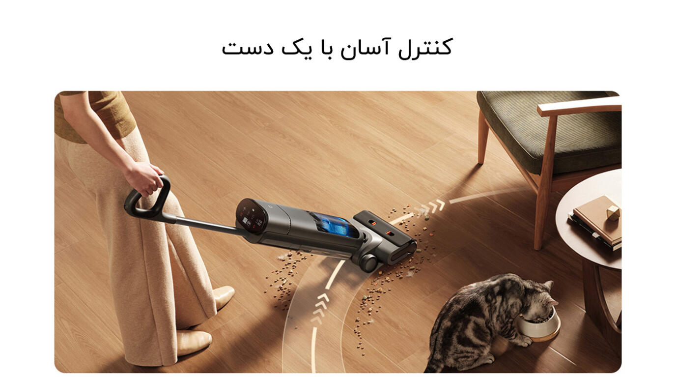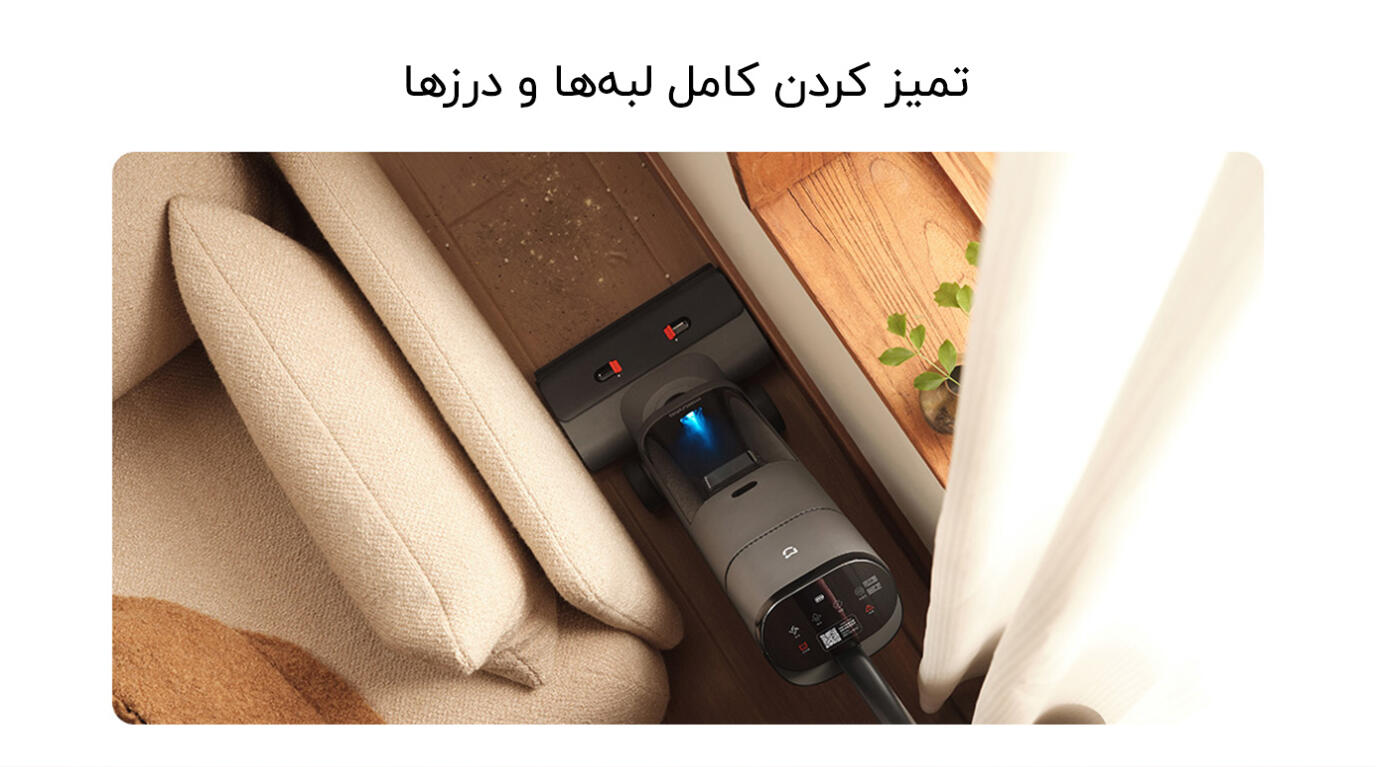 شیائومی در این مدل از طراحی ۱۸۰ درجه تختشونده و چرخش ۴۸.۵ درجهای استفاده کرده است. این ویژگی امکان نظافت راحت زیر مبلمان، تخت و فضاهای کمارتفاع را فراهم میکند؛ فضاهایی که معمولا با زمینشویهای عادی قابل دسترس نیستند. این دستگاه حتی در ارتفاع ۱۳ سانتیمتری نیز بهراحتی حرکت میکند. فناوری Superplana 2.0 نیز به جداسازی بخار آب و جلوگیری از ورود فاضلاب به موتور کمک میکند تا هنگام خواباندن دستگاه، مکش آن کاهش پیدا نکند.