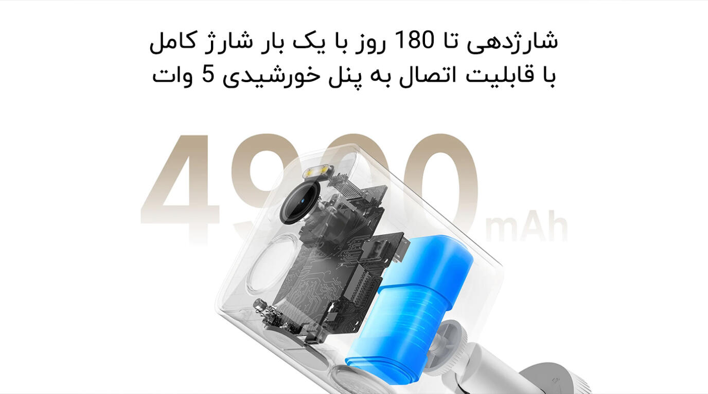 دوربین فضای باز شیائومی BW300 یک باتری با ظرفیت ۴۹۰۰ میلی آمپر ساعت دارد که یک باتری بزرگ و بادوام محسوب میشود. این باتری خیالتان را راحت میکند. از آنجایی که ساخت دوربین به گونهای است که برق کمی مصرف میکند، طول عمر باتری طولانیتر خواهد شد.
