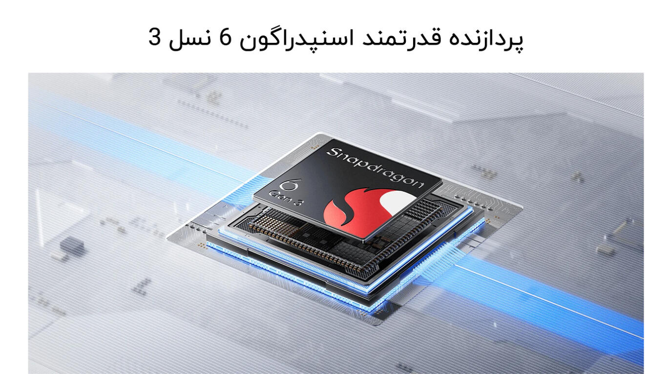 | نوع و مشخصات پردازنده اصلی : | کوآلکام اسنپدراگون 6 نسل سه | Qualcomm SM6475-AB Snapdragon 6 Gen 3 |