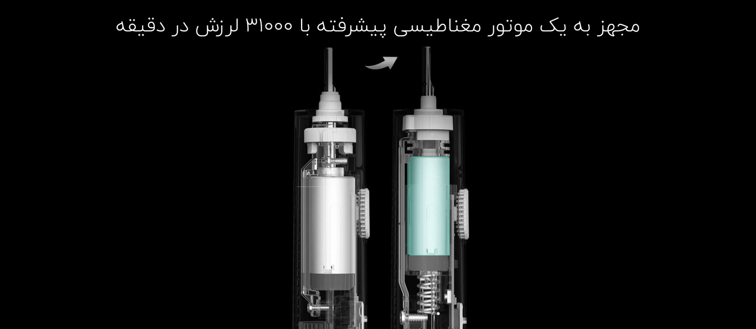 مسواک برقی شیائومی مدل T500 مجهز به یک موتور مغناطیسی پیشرفته است که می تواند 31000 لرزش در دقیقه تولید کند. این تکنولوژی باعث میشود سطح دندانها و فضای بین آنها به صورت عمیق و مؤثر پاک شود. توان بالای موتور، به همراه طراحی علمی برس، تضمین میکند که پلاکها، ذرات غذایی و باکتریها حتی در نواحی سخت دسترسی، از بین بروند. این قدرت پاککنندگی بدون آسیب رساندن به مینای دندان، تجربهای امن و حرفهای از مسواک زدن را فراهم میکند.