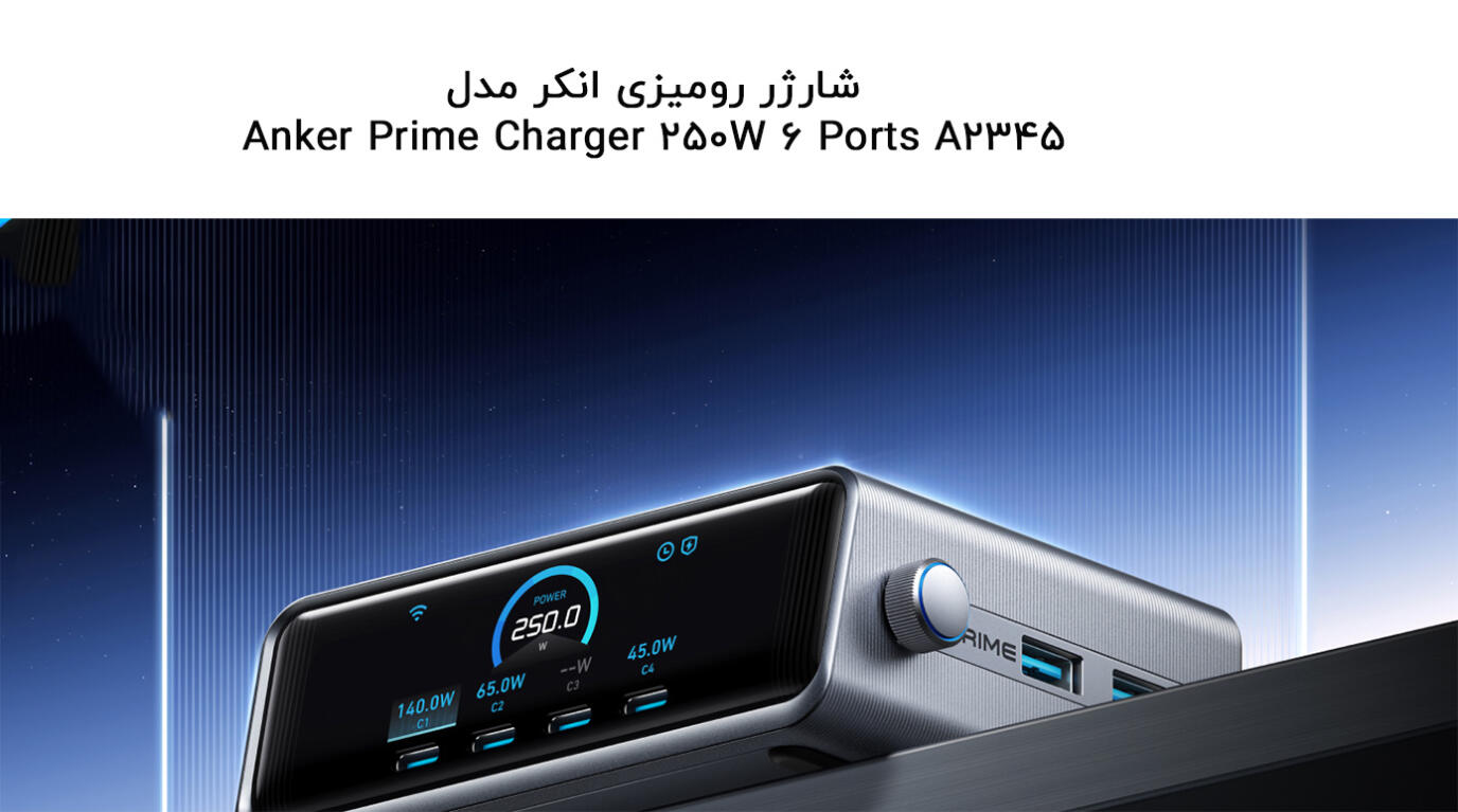 شارژر رومیزی 6 پورت 250 واتی انکر مدل Anker Prime A2345 یک راهکار حرفهای و چندمنظوره برای شارژ همزمان چندین دستگاه است. این شارژر با توان خروجی فوقالعاده ۲۵۰ وات و بهرهگیری از فناوری GaN، امکان شارژ سریع و ایمن انواع گوشی، تبلت، لپتاپ، ایرپاد، ساعت هوشمند و کنسول بازی را فراهم میکند.در ادامه با مکعب همراه باشید تا به این مهم که این شارژر با طراحی جمعوجور و کاربردی آن، این محصول را به گزینهای ایدهآل برای خانه، دفتر و محیطهای کاری تبدیل کرده است،دست یابیم.