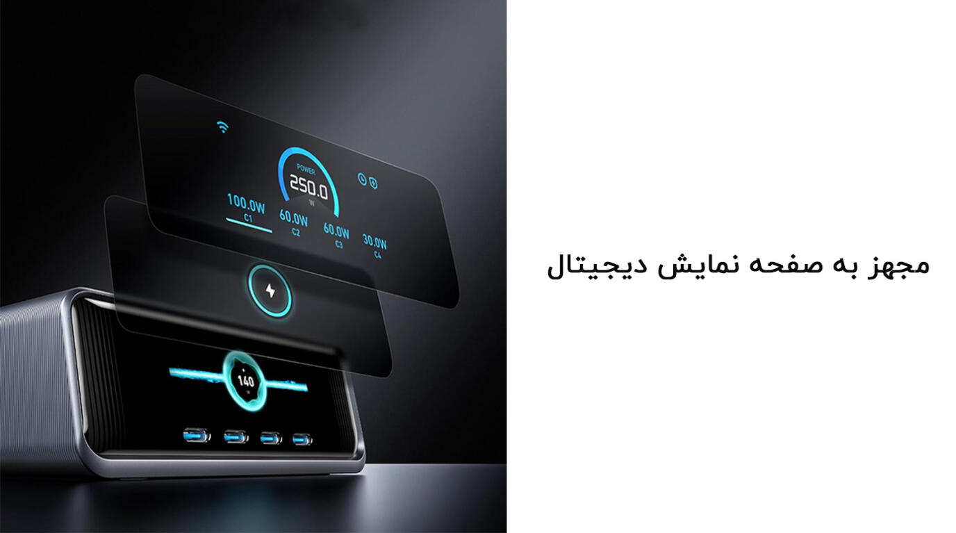 این شارژر دارای ۶ پورت خروجی شامل ۴ پورت USB-C و ۲ پورت USB-A است. پورت USB-C1 با توان ۱۴۰ وات امکان شارژ مکبوک پرو ۱۶ اینچی را تنها در ۲۵ دقیقه تا ۵۰٪ فراهم میکند. سایر پورتها نیز توانایی شارژ سریع گوشیها، تبلتها و گجتهای مختلف را دارند. مجموع توان خروجی در حالت استفاده همزمان از تمام ۶ پورت، ۲۵۰ وات است و کاربران میتوانند بدون افت سرعت، چند دستگاه را به صورت همزمان شارژ کنند.