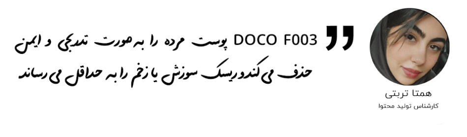 داشتن گواهی ضد آب IPX7 به این معناست که DOCO F003 برای استفاده در محیطهای مرطوب کاملاً ایمن است. میتوان بعد از حمام، زمانی که پوست نرمتر است، از دستگاه استفاده کرد و سپس آن را بهراحتی شست. این ویژگی، هم ایمنی کاربر را افزایش میدهد و هم بهداشت شخصی را در سطح بالاتری نگه میدارد.