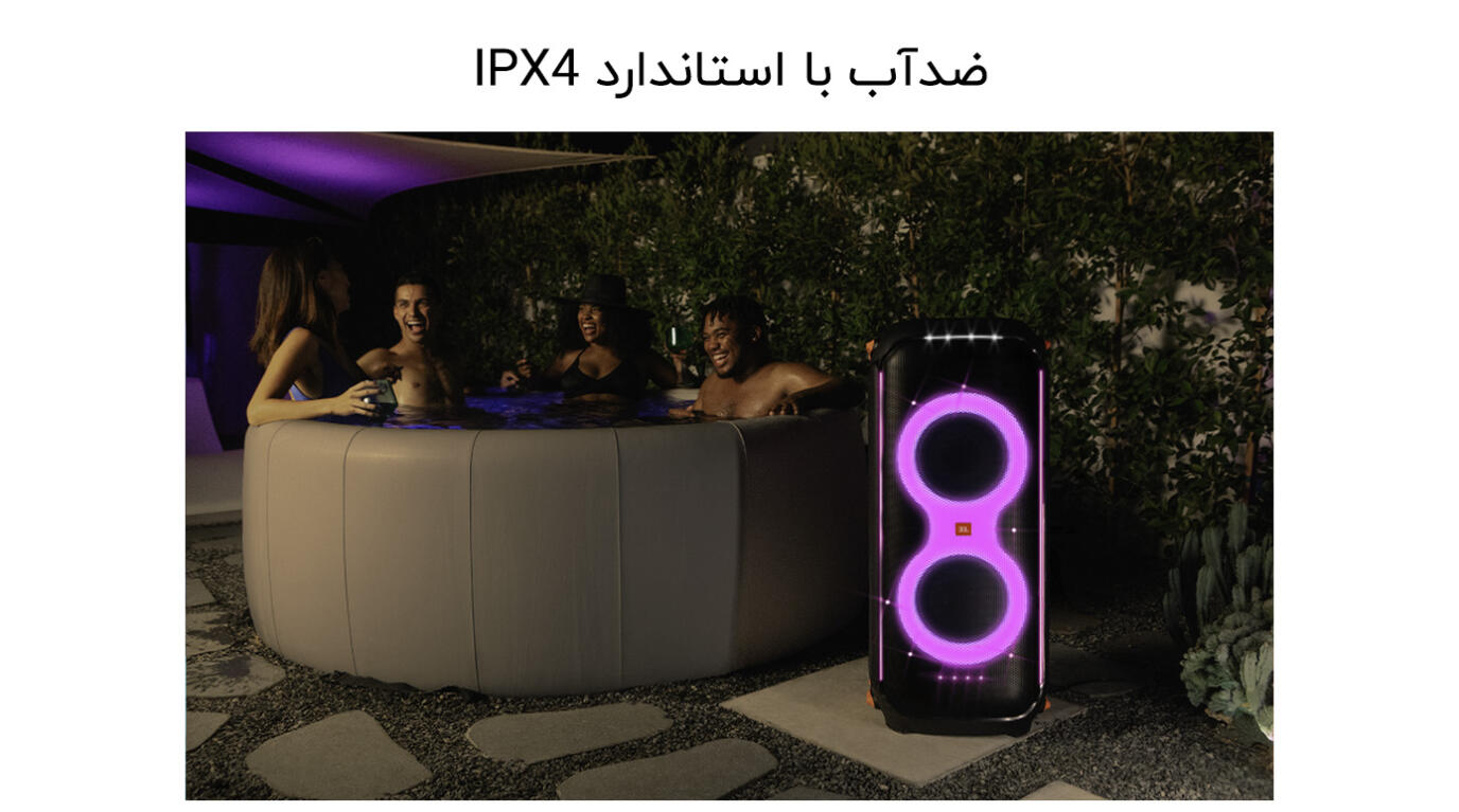 - ضدآب با استاندارد IPX4: این ویژگی به شما این امکان را میدهد که در کنار استخر یا در مهمانیهای بیرون از خانه بدون نگرانی از آسیب دیدن به خاطر آب از اسپیکر خود استفاده کنید.