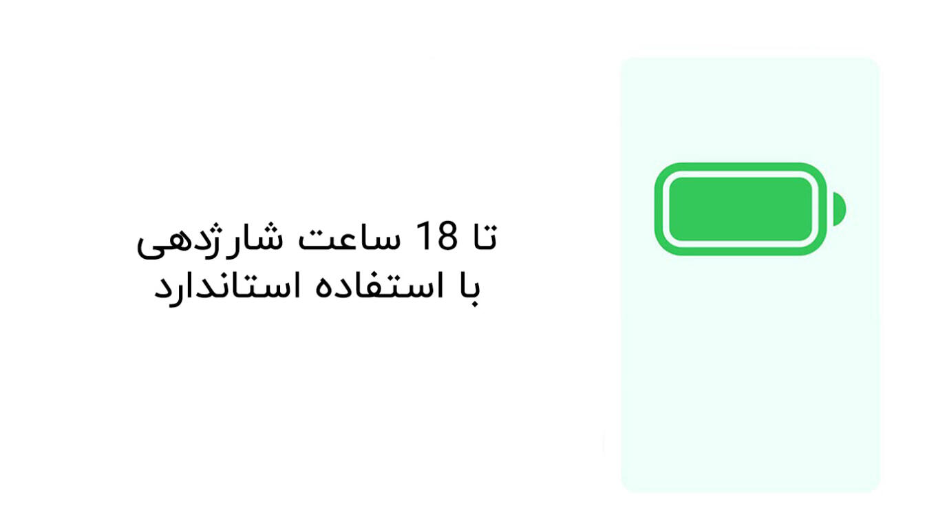 | مشخصات باتری | تا 18 ساعت شارژدهی در حالت استفاده عادی و تا 32 ساعت در حالت ذخیره باتری | پشتیبانی از شارژ سریع 15 دقیقهای برای استفاده تا 8 ساعت |