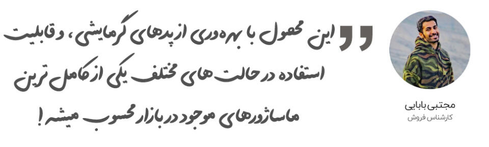 | قابلیت گرمایش | دارد | پد گرمایشی وسیع با مساحت 51000 میلیمترمربع | قابلیت تنظیم دما (45-50 درجه سانتیگراد) |