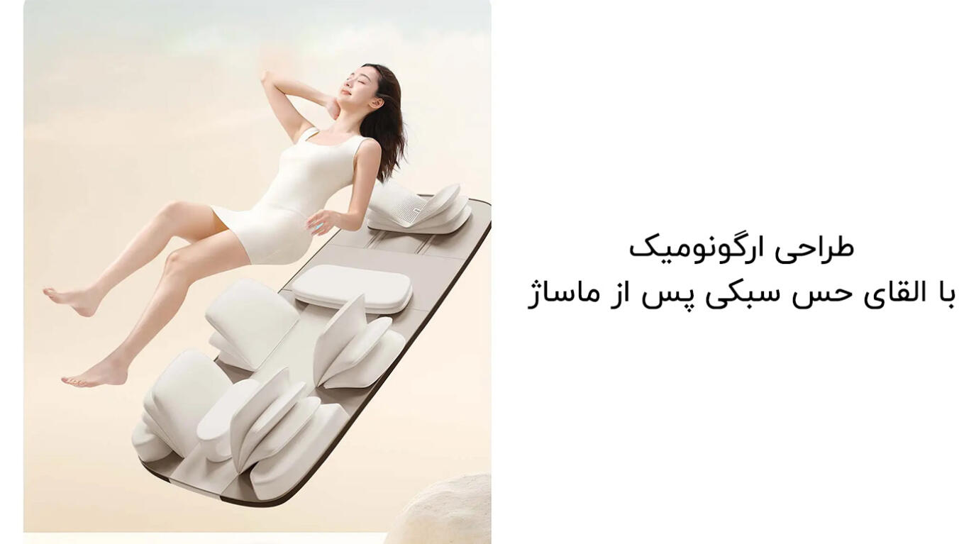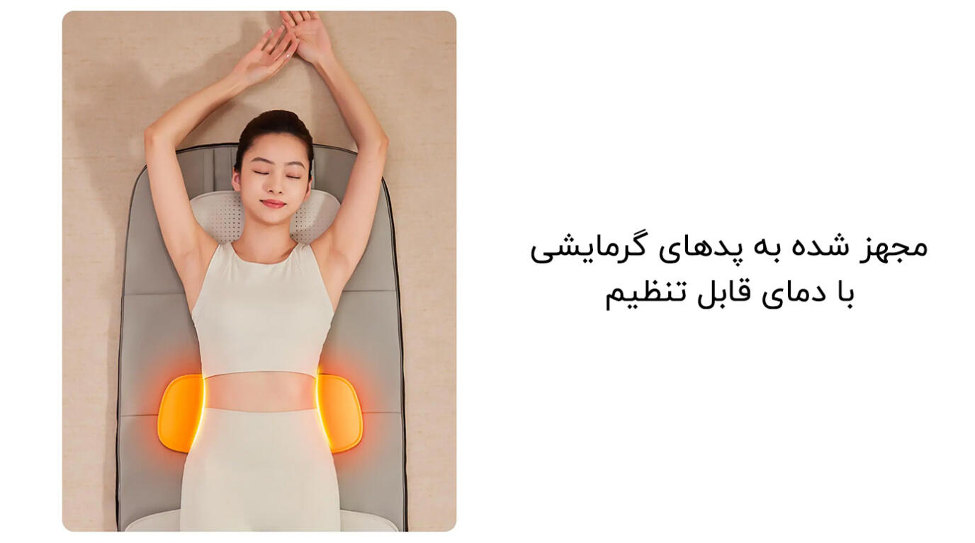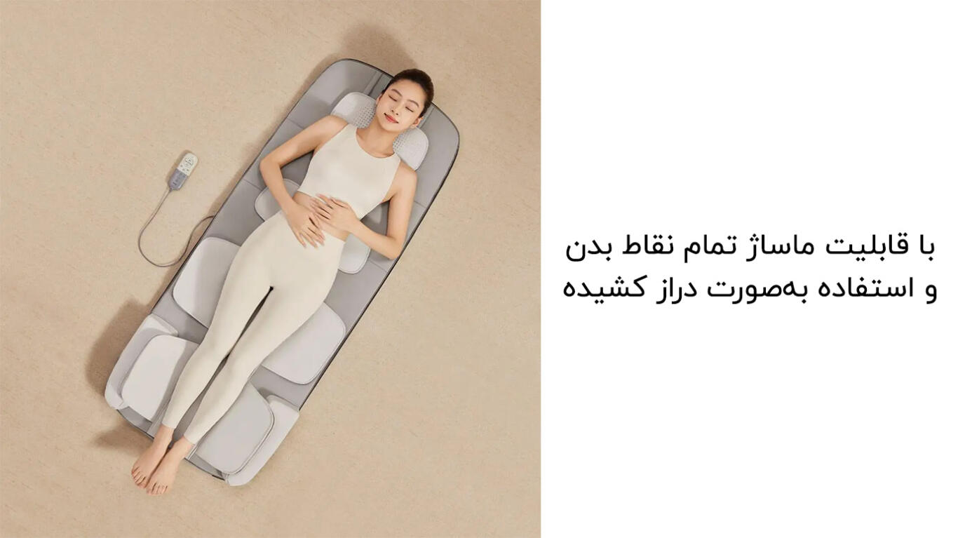 این ماساژور یک راهکار حرفهای برای دریافت ماساژ در حالت خوابیده است. این تشک با ادغام مجموعهای از تکنیکهای ماساژ، به راحتی به شل کردن عضلات گردن، کاهش فشار در ناحیه شانه، بهبود نگرانیهای کمر، چرخش لگن و کاهش گرفتگی در عضلات پا کمک میکند. بهوسیله این فناوری پیشرفته، میتوان تمامی نقاط بدن را تحت تأثیر قرار داد و به آرامش و کاهش درد در نواحی مختلف دست یافت.