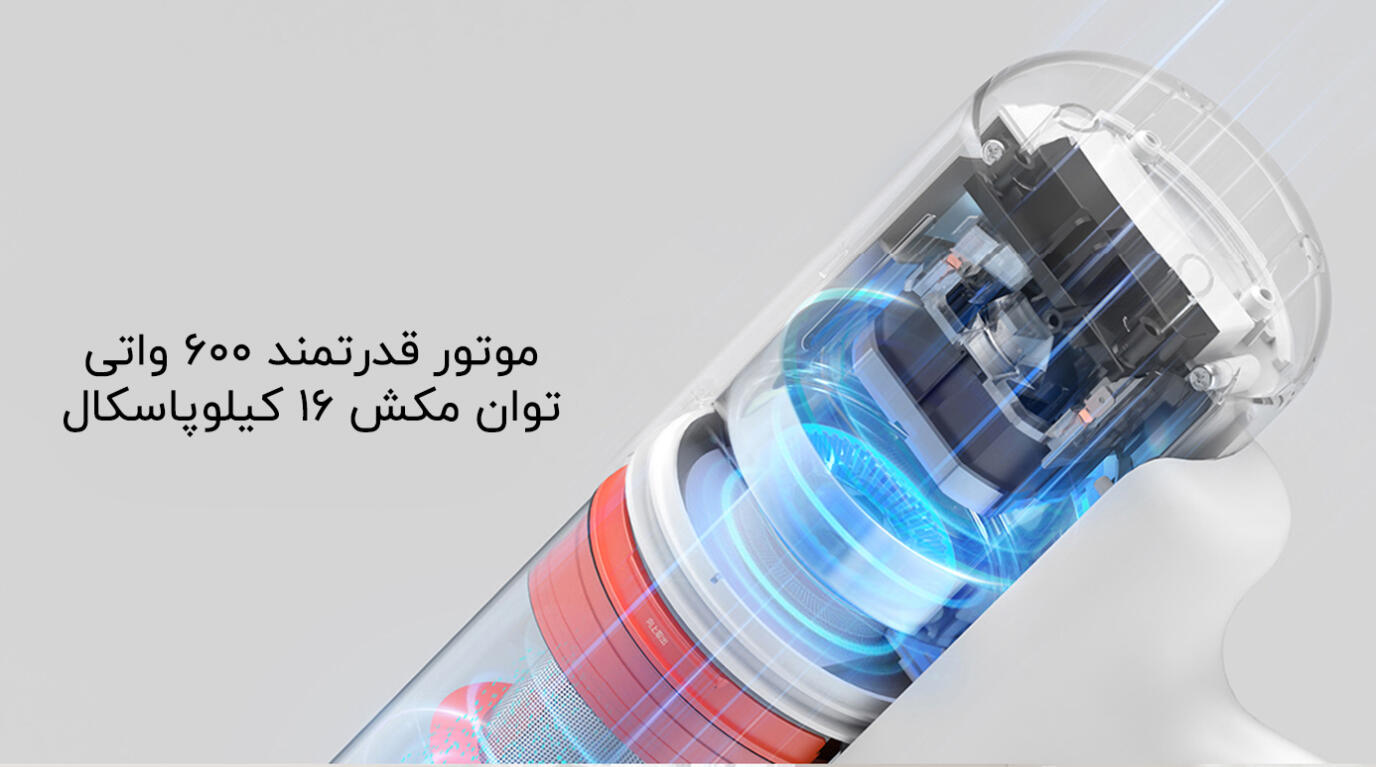 قلب تپنده جارو برقی شیائومی مدل Mijia wired vacuum cleaner B210 یک موتور قدرتمند ۶۰۰ واتی است که توان مکش ۱۶ کیلوپاسکال (kPa) را به صورت مداوم و بدون افت فشار در اختیار شما میگذارد. چنین توانی فقط گرد و غبار سطحی را جمع نمیکند، بلکه ذرات ریزتر، موها و حتی آلودگیهای گیر کرده در عمق بافت فرش و درزهای سطوح سخت را نیز بهخوبی بیرون میکشد.