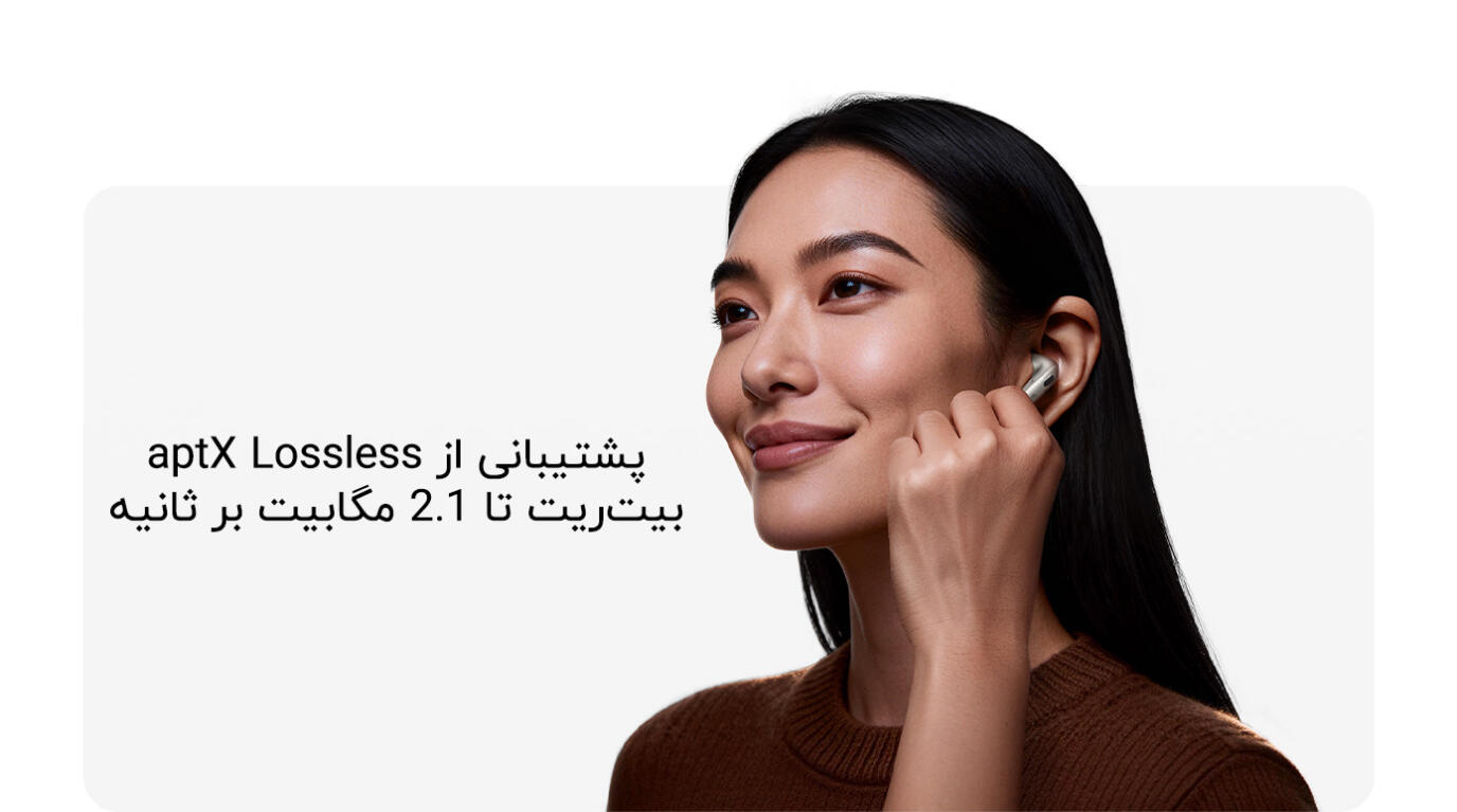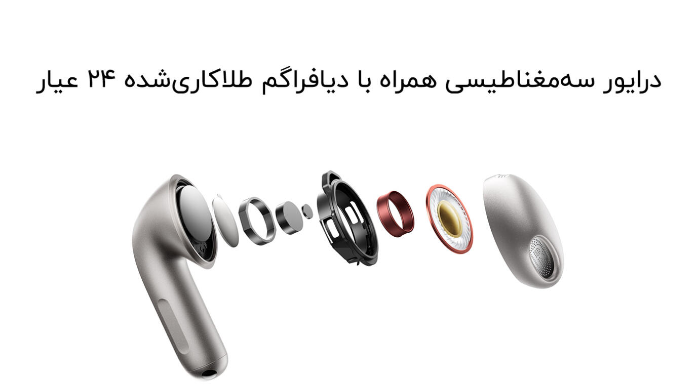 مهمترین برجستگی Buds 6، ادغام Snapdragon Sound است که پشتیبانی از aptX Lossless با بیتریت بالا تا ۲٫۱ مگابیت بر ثانیه را ممکن میسازد (بالاتر از LDAC سونی). داخل هر هدفون، واحد درایور سهمغناطیسی همراه با دیافراگم طلاکاریشده ۲۴K قرار گرفته که حساسیت فرکانسهای بالا را ۳۰ درصد افزایش داده و بیس قدرتمند همراه با صدای شفاف ارائه میدهد.
