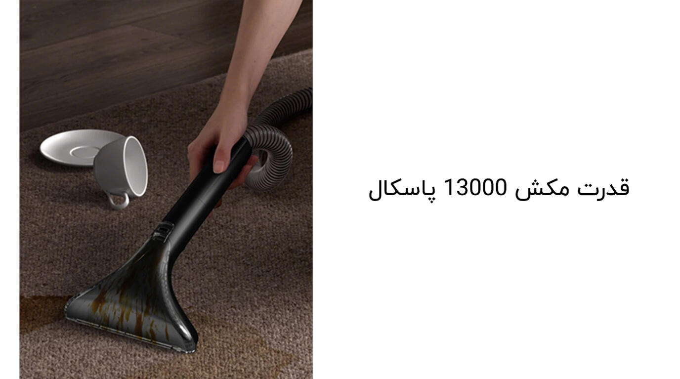 کابل بلند ۵ متری آزادی حرکت کامل در خانههای بزرگ را فراهم میکند. استاندارد IPX4 دستگاه را در برابر پاشش آب مقاوم کرده و دسته نیمهقوسی وزن را بهطور یکنواخت توزیع میکند تا دست و کمرتان خسته نشود.
