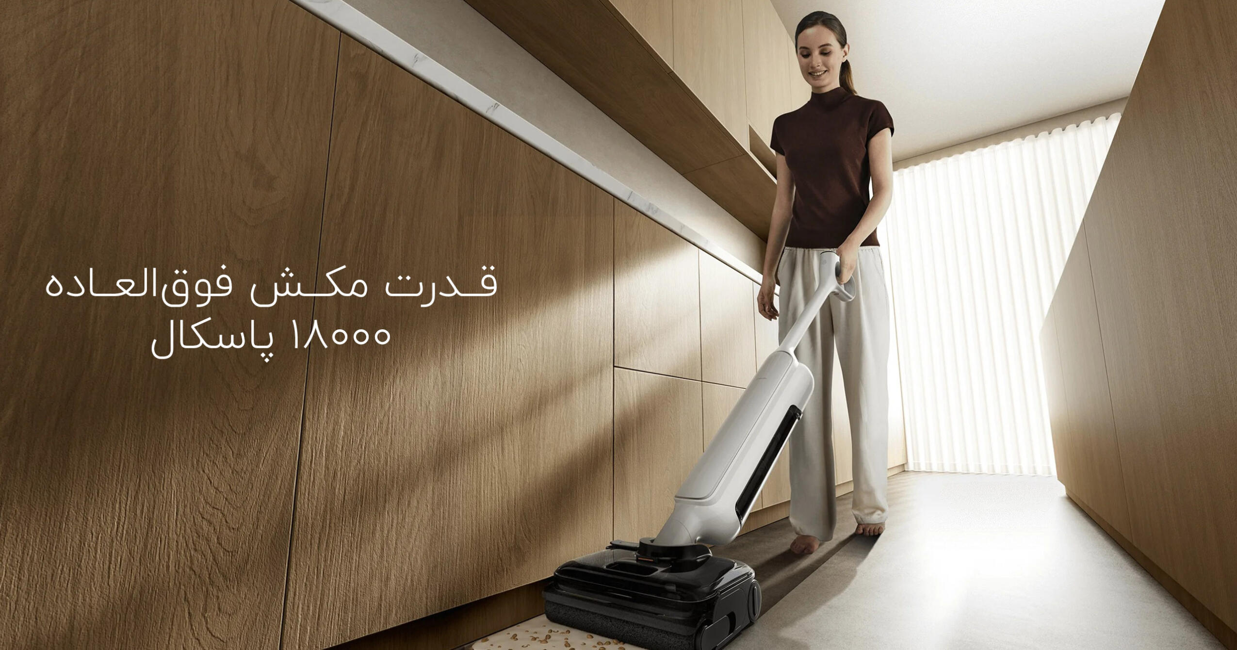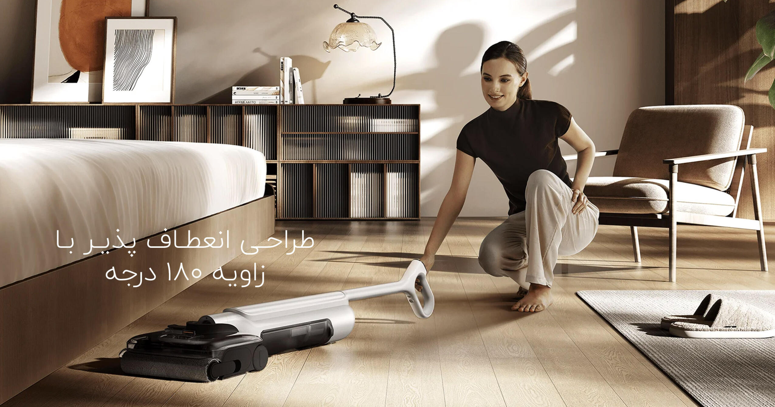 طراحی ارگونومیک این دستگاه باعث میشود حتی فضاهای کمارتفاع زیر مبل، تخت و کابینت هم به راحتی تمیز شوند. زاویهی خوابیده 180 درجه و ارتفاع کم برس، دسترسی به نقاط سخت را ممکن کرده و هیچ گوشهای از دید پنهان نمیماند. این ویژگی باعث میشود نظافت خانه حتی در فضاهای محدود، سریع و راحت باشد.