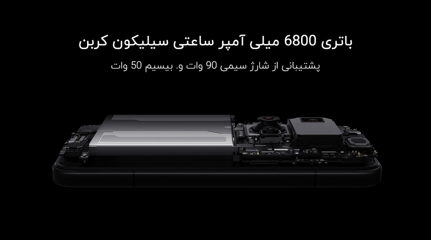 باتری 6800 میلی آمپر ساعتی از نوع سیلیکون کربن با پشتیبانی از شارژ سریع 90 واتی سیمی، 50 وات بیسیم و 22.5 وات سیمی معکوس