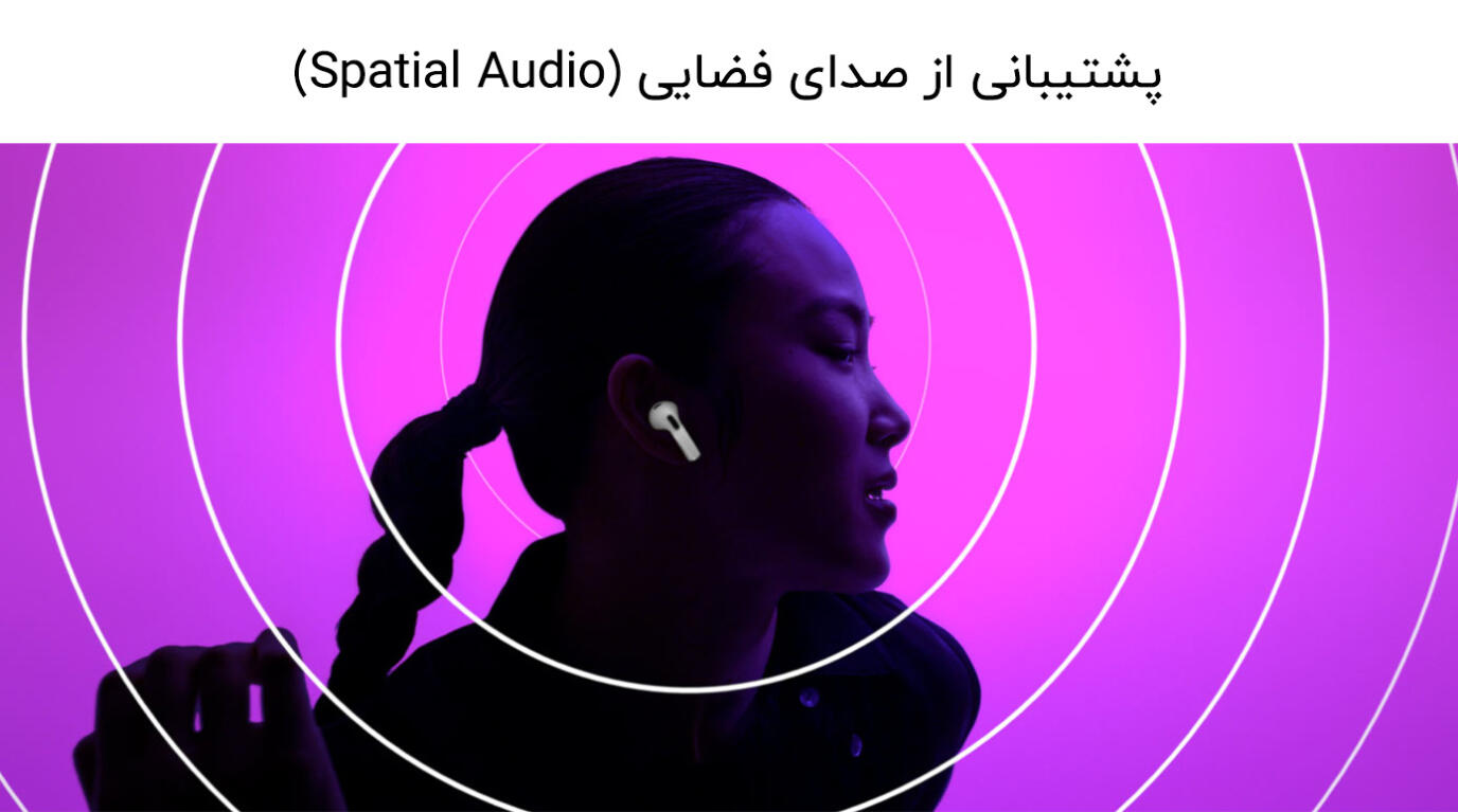 در نهایت نوبت به قابلیت Spatial audio میرسد که به این محصول اضافه شده و باعث میشود تجربه صدای 360 درجهای برای شما ایجاد شود. این قابلیت با توجه به جابجایی سر شما و زاویه گوشها صدا را تنظیم میکند و به نوعی صدا همراه شما را دنبال میکند تا حسی بسیار نزدیک به واقعیت بهوجود بیاید. عملکرد این قابلیت تحسینبرانگیز است و کار میکند که خود را در مرکز صدای محیط متصور شوید و حس کنید که در یک سالن کنسرت یا سینما قرار دارید.