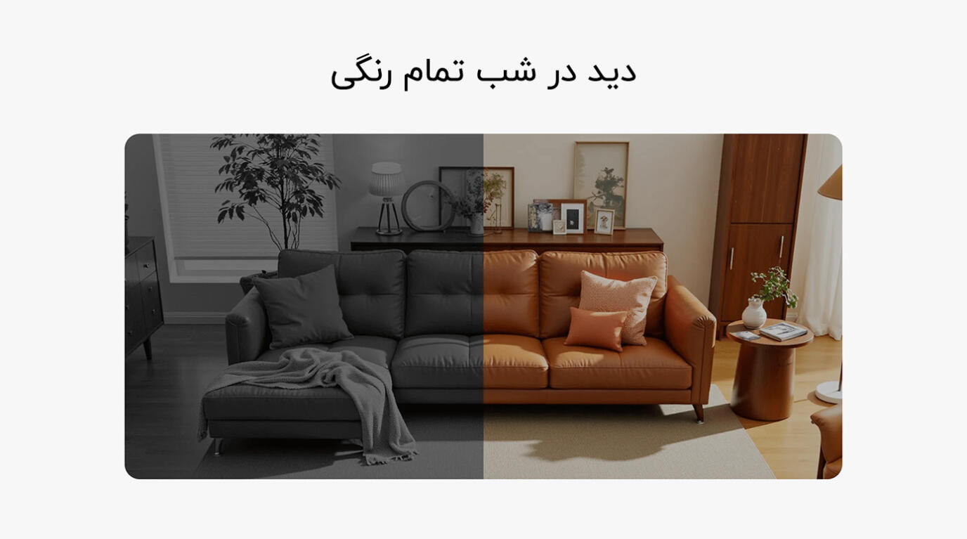 دوربین با رزولوشن ۳ مگاپیکسل (۲۳۰۴ × ۱۲۹۶ پیکسل) و کیفیت ۲K UHD، جزئیات زنده و واقعی را ثبت میکند. فناوری دید در شب تمامرنگی با سنسور حساس به نور، زمان طولانیتری تصاویر رنگی را حفظ مینماید و در شرایط کمنور به سیاهوسفید سوئیچ میکند. شش لامپ مادون قرمز داخلی، دید در شب بهبودیافته بدون نور قرمز مزاحم فراهم میآورد و تصاویر واضحی حتی در تاریکی کامل ارائه میدهد.
