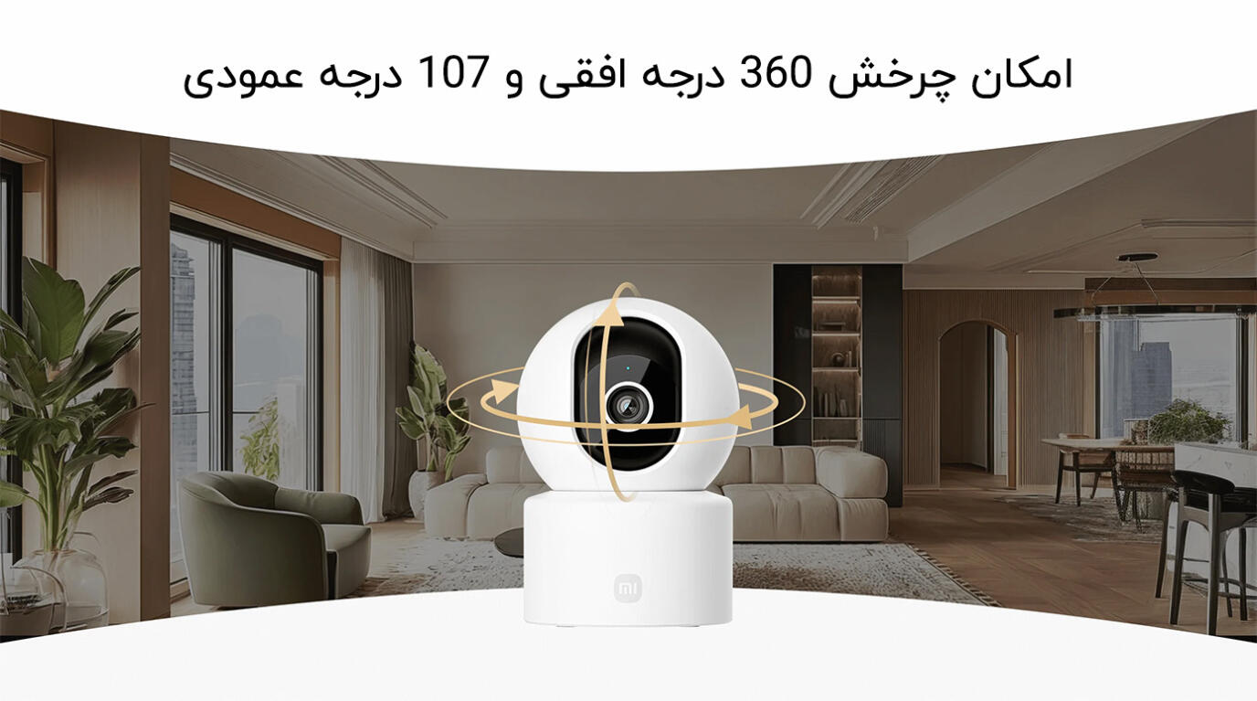 موتور دو محوره پن-تیلت-زوم امکان چرخش ۳۶۰ درجه افقی و ۱۰۷ درجه عمودی را میدهد. کاربران میتوانند از طریق اپلیکیشن دوربین را به سمت بالا، پایین، چپ یا راست هدایت کنند تا پوشش کاملی از محیط به دست آورند. این ویژگی برای نظارت بر اتاقهای بزرگ یا فضاهای باز ایدهآل است.