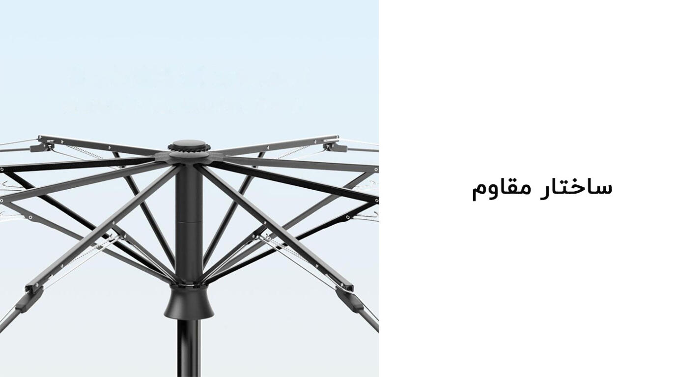 دنده های فایبر گلاس با استحکام بالا همراه با قاب آلیاژ آلومینیومی این چتر را در برابر وزش بادهای شدید مقاوم می کند. این ساختار علاوه بر مقاومت بالا، انعطاف پذیر است و از شکستگی دنده ها جلوگیری می کند. به همین دلیل این چتر برای استفاده روزمره در محیط های مختلف شهری و سفرهای کوتاه بسیار مناسب است.