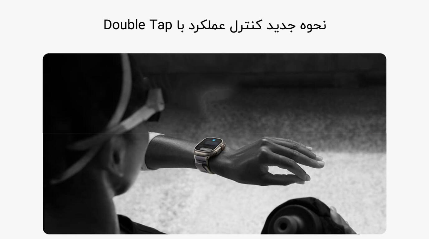 قابلیت Double Tap یکی از ویژگیهای جدید و جذاب اپل واچ اولترا 2 است که به کاربران امکان می دهد بدون لمس صفحه نمایش و تنها با یک حرکت دست با ساعت خود تعامل کنند. این ویژگی از سنسورهای پیشرفته و هوش مصنوعی استفاده کرده و دستورات مختلفی را اجرا می کند. این ویژگی مخصوصاً در شرایطی که دستهایتان پر است، در حال ورزش هستید یا نمی خواهید ساعت را لمس کنید، بسیار کاربردی خواهد بود. تصور کنید در حال کوهنوردی هستید و باید بدون متوقف کردن مسیر، به تماس خود پاسخ دهید، یا هنگام آشپزی بدون لمس صفحه، تایمر را خاموش کنید این ویژگی قطعا بسیار کاربردی است.
