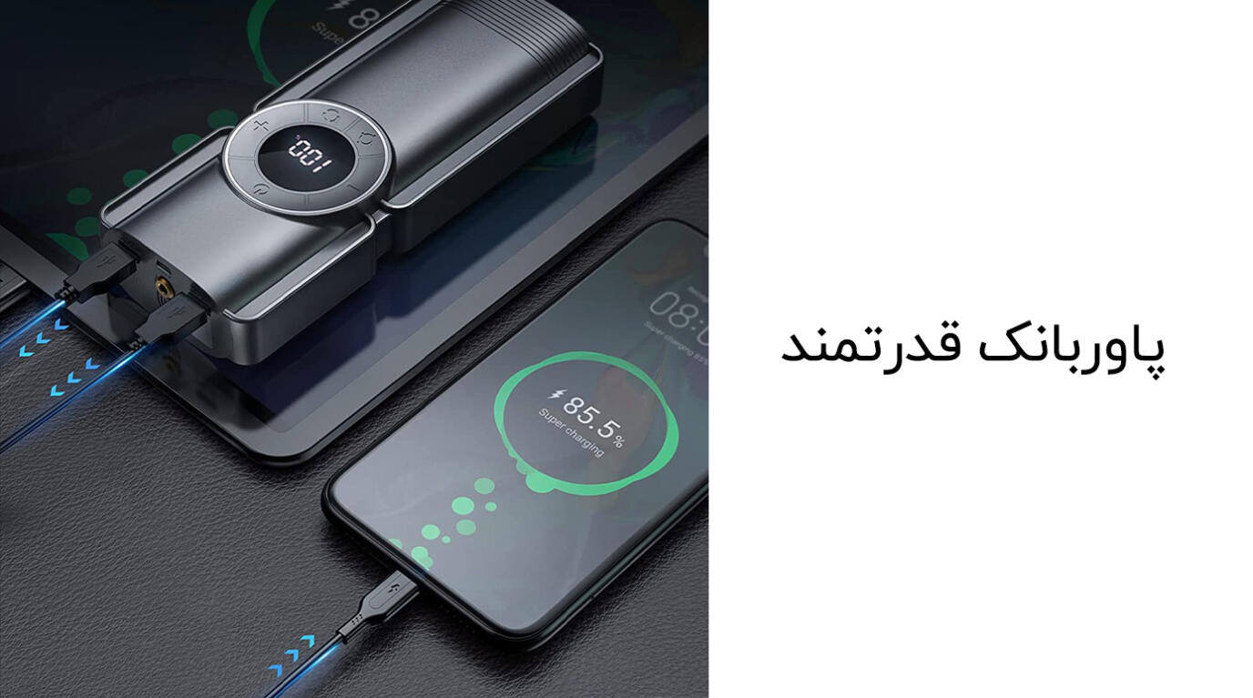 قابلیتهای جامپ استارتر، کمپرسور باد، پاوربانک و چراغ قوه گرین لاین GNJUMPSTRBK