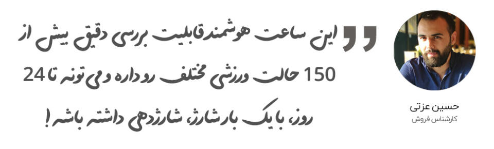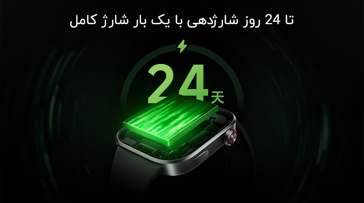 | مشخصات باتری | شارژدهی با استفاده حالت پایه تا ۲۴ روز، در استفاده معمولی تا ۱۲ روز و با فعال بودن AOD تا ۷ روز شارژدهی |